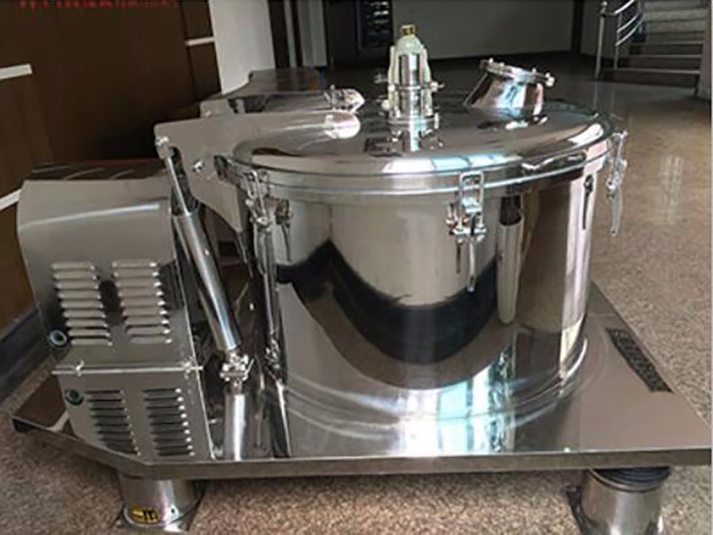 轉(zhuǎn)鼓由裝有離合器的傳動(dòng)部件啟動(dòng)高速運(yùn)轉(zhuǎn)產(chǎn)生離心力場(chǎng),將注入轉(zhuǎn)鼓里的濾液通過襯在轉(zhuǎn)鼓里的濾袋分離,濾渣被截留在轉(zhuǎn)鼓里,濾液經(jīng)出液管導(dǎo)入收集容器中,待達(dá)到裝料限度后,停止加料,切斷電源,用制動(dòng)裝置使轉(zhuǎn)鼓停止運(yùn)轉(zhuǎn)(配備變頻器時(shí)可用制動(dòng)單元來實(shí)現(xiàn)),打開機(jī)蓋,用吊裝工具將濾袋吊出機(jī)體,卸料,即完成一個(gè)工作循環(huán)。